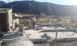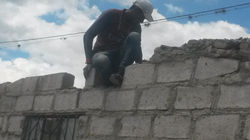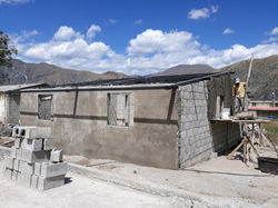 La vivienda es de bloque trabado y ya deteriorado, piso de tierra techo de eternit; su vivienda tiene tres cuartos (cocina, y dos dormitorios). El techo esta ya deteriorado y una viga ya está rota en algunas partes esta parchado con pedazos de plástico.